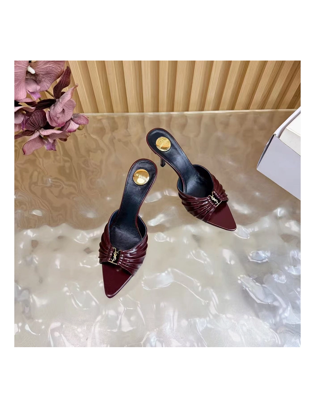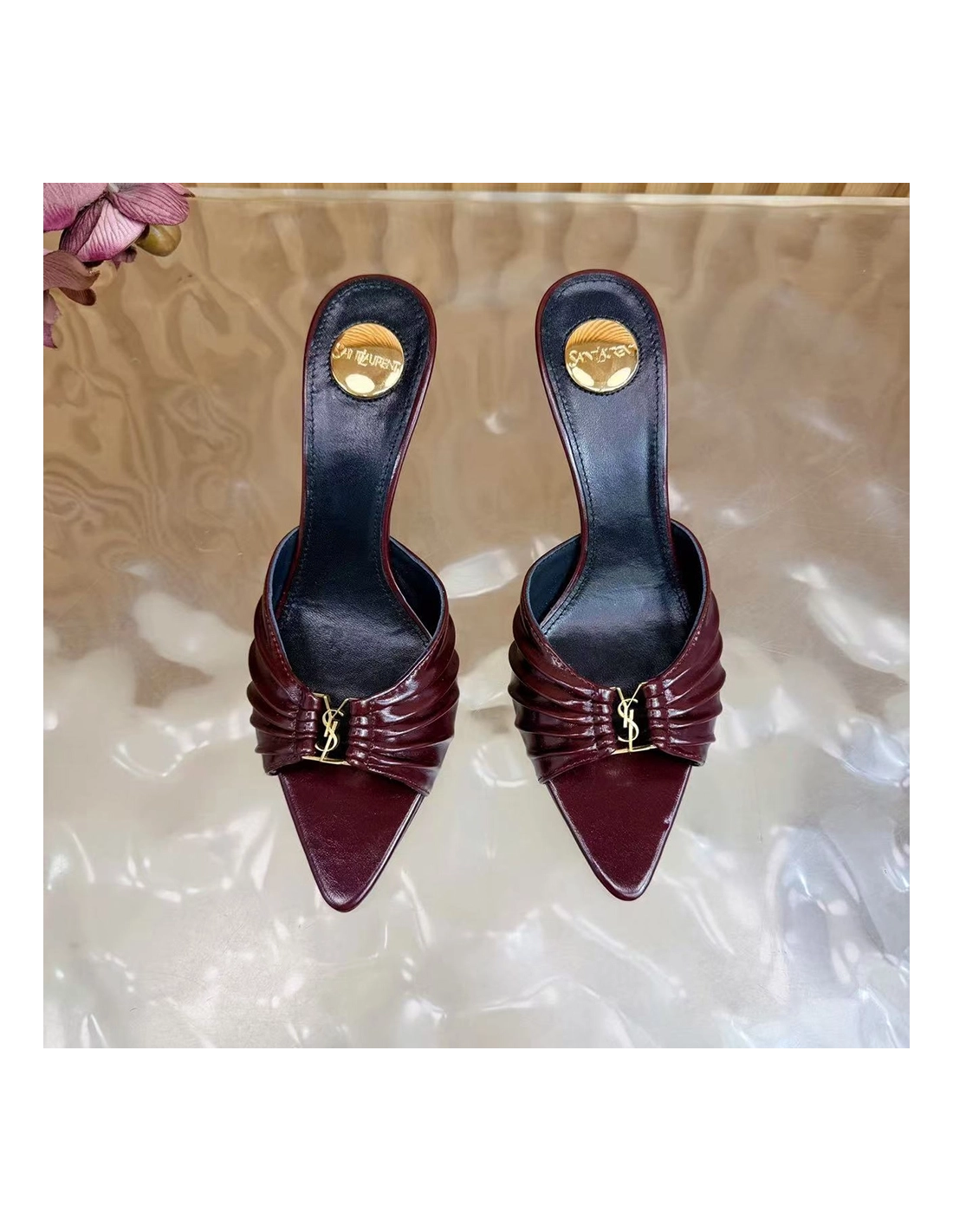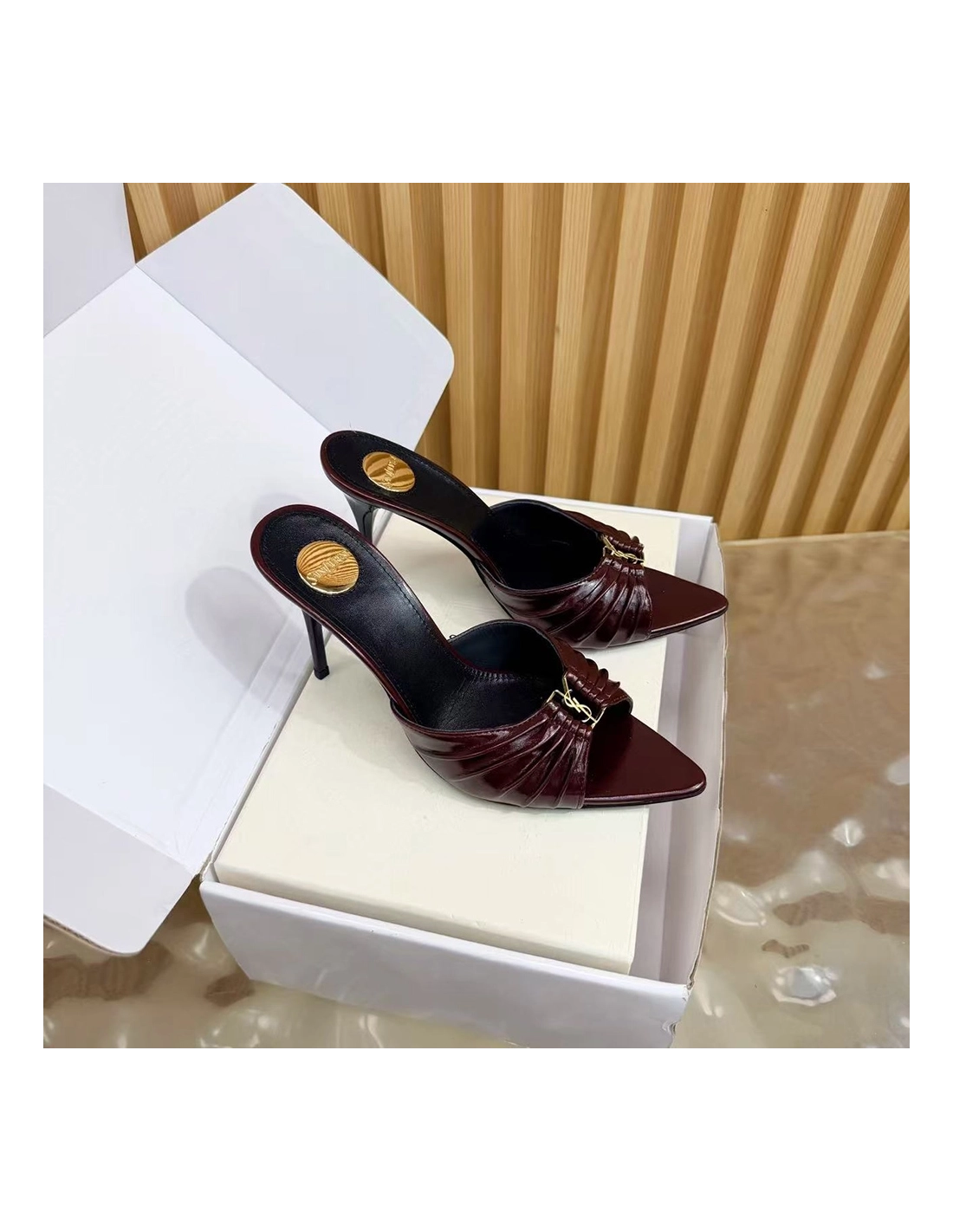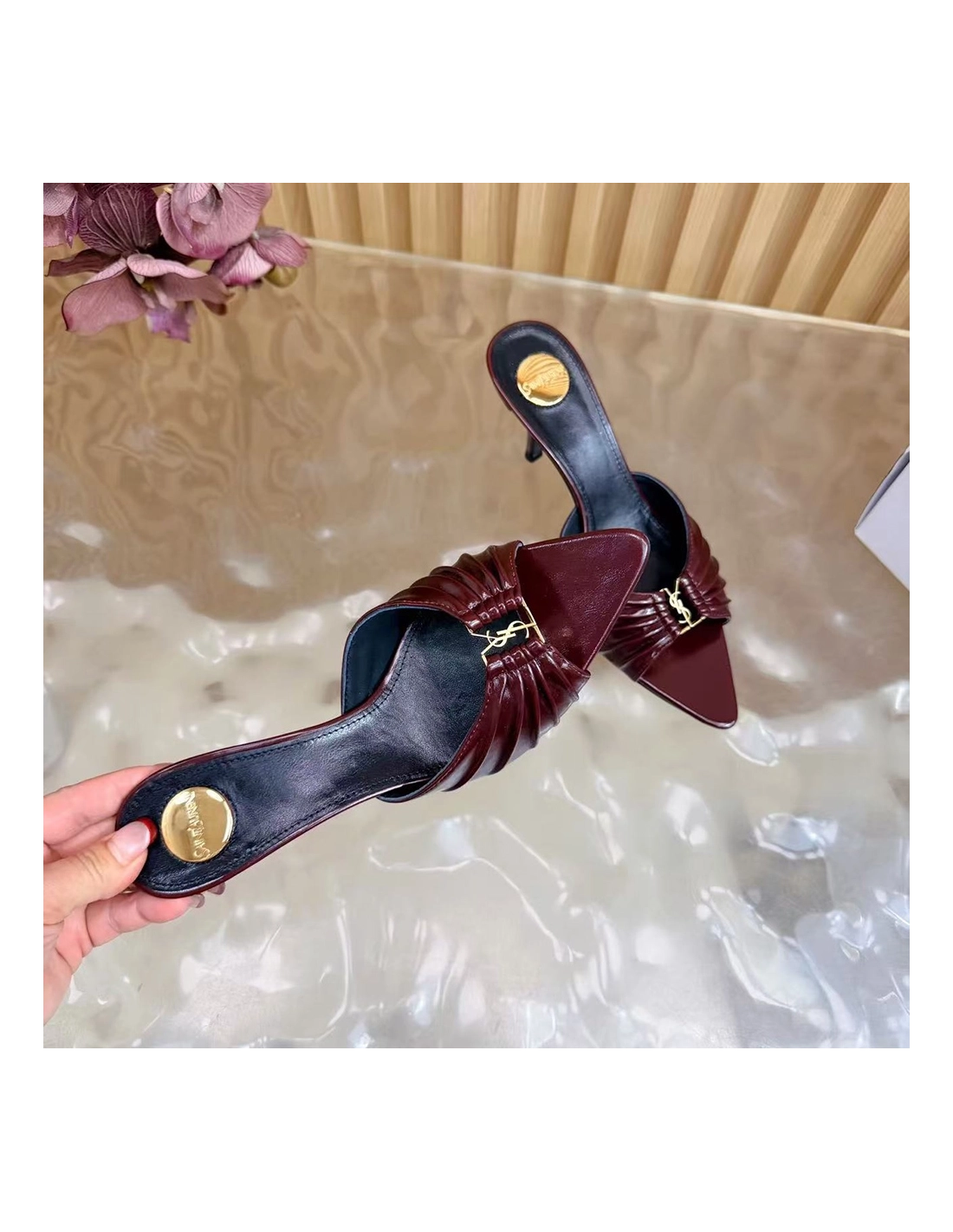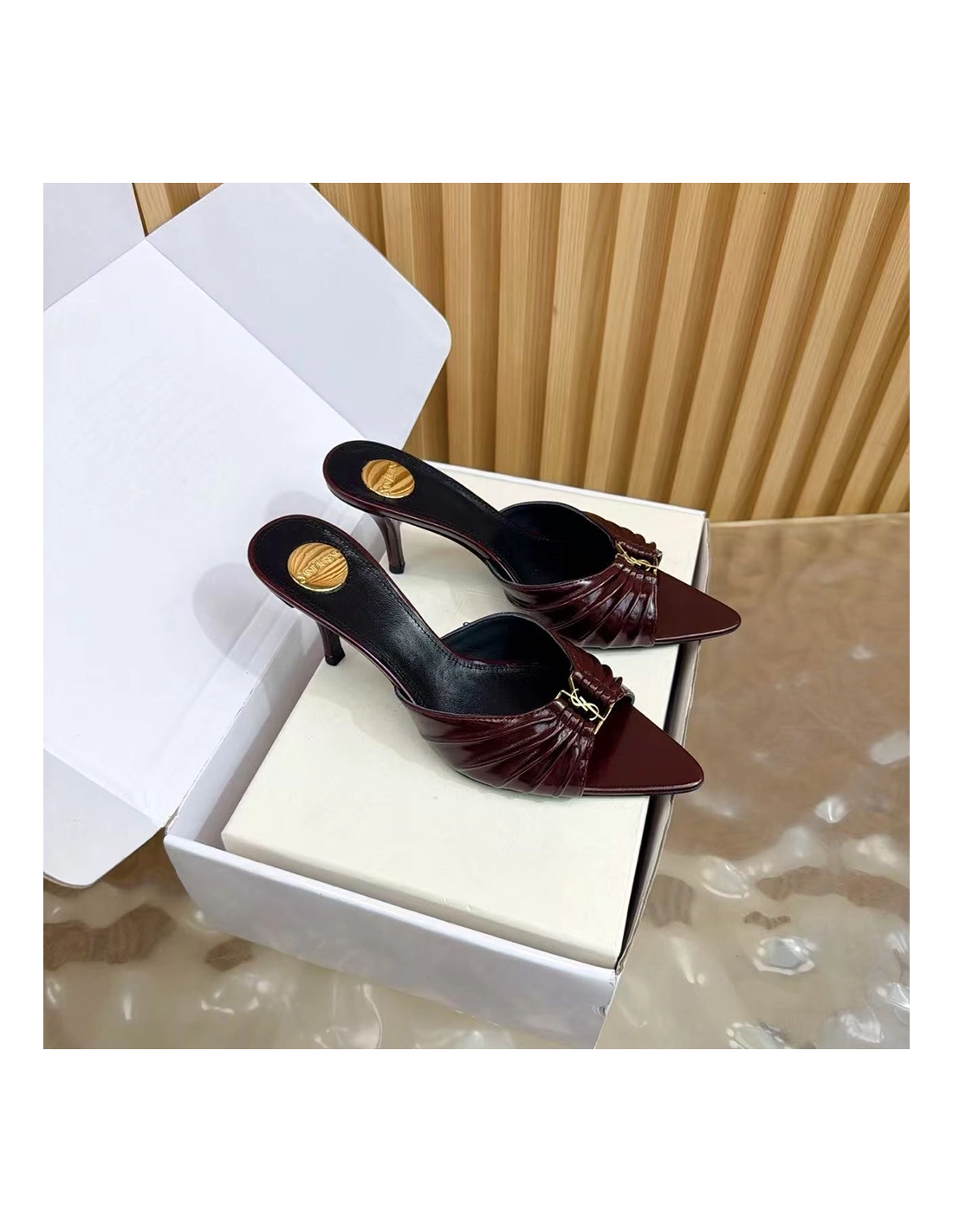 Saint Laurent Babylone YSL Ruched Leather Mule Sandals