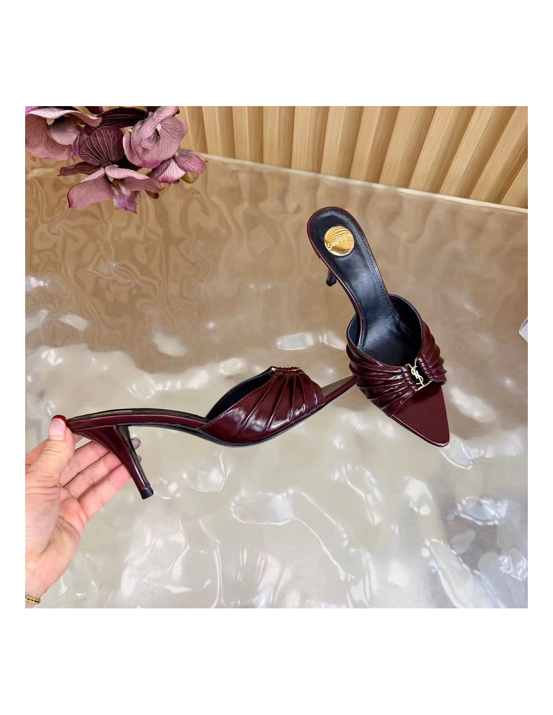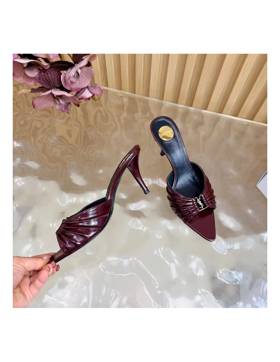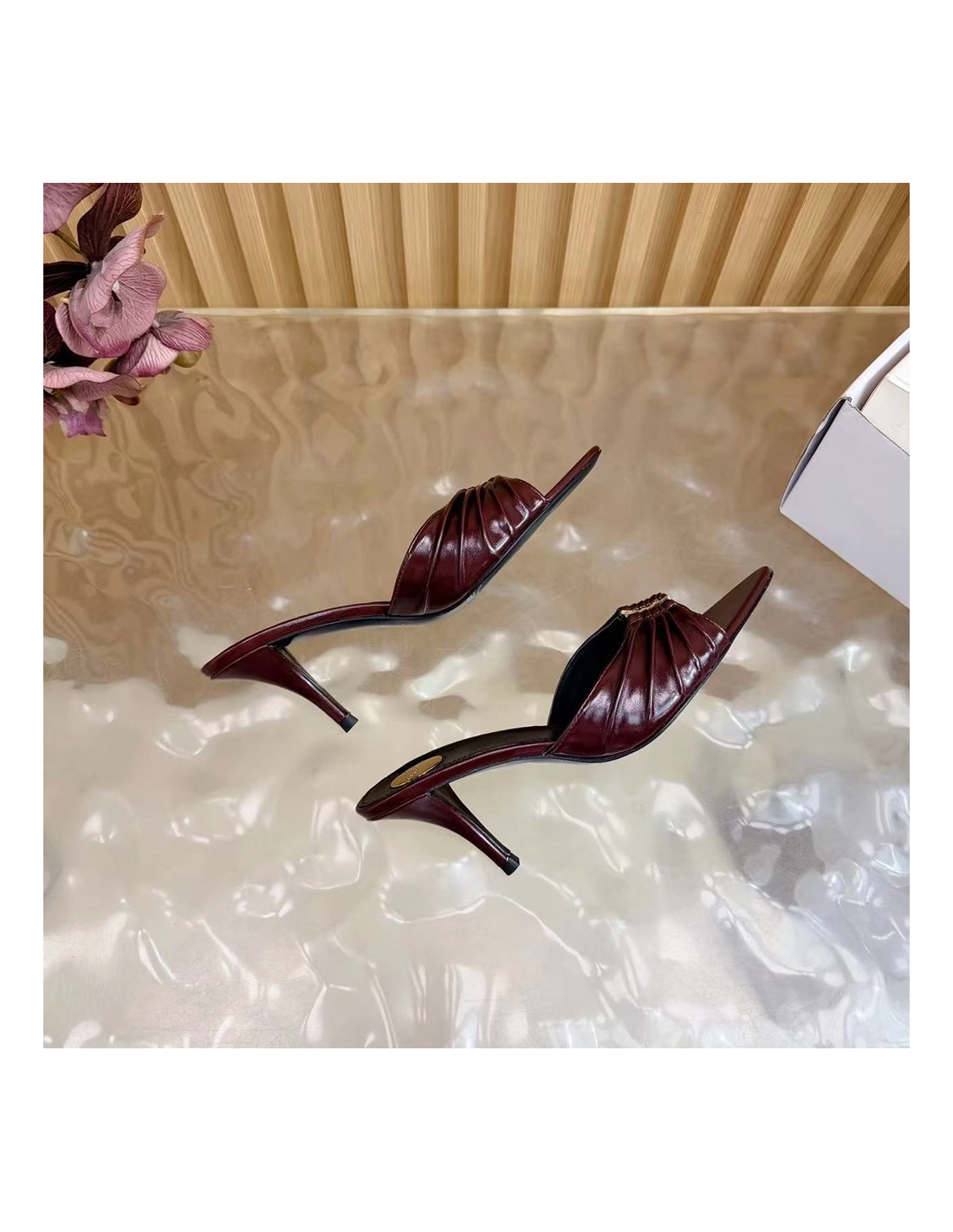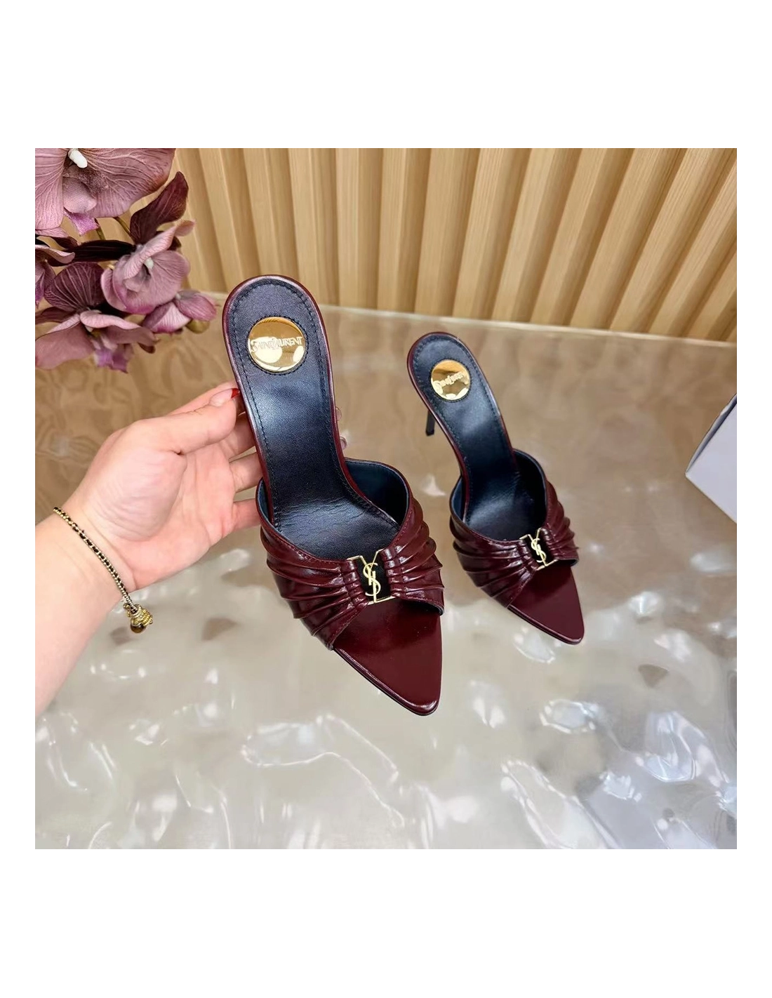 Saint Laurent Babylone YSL Ruched Leather Mule Sandals