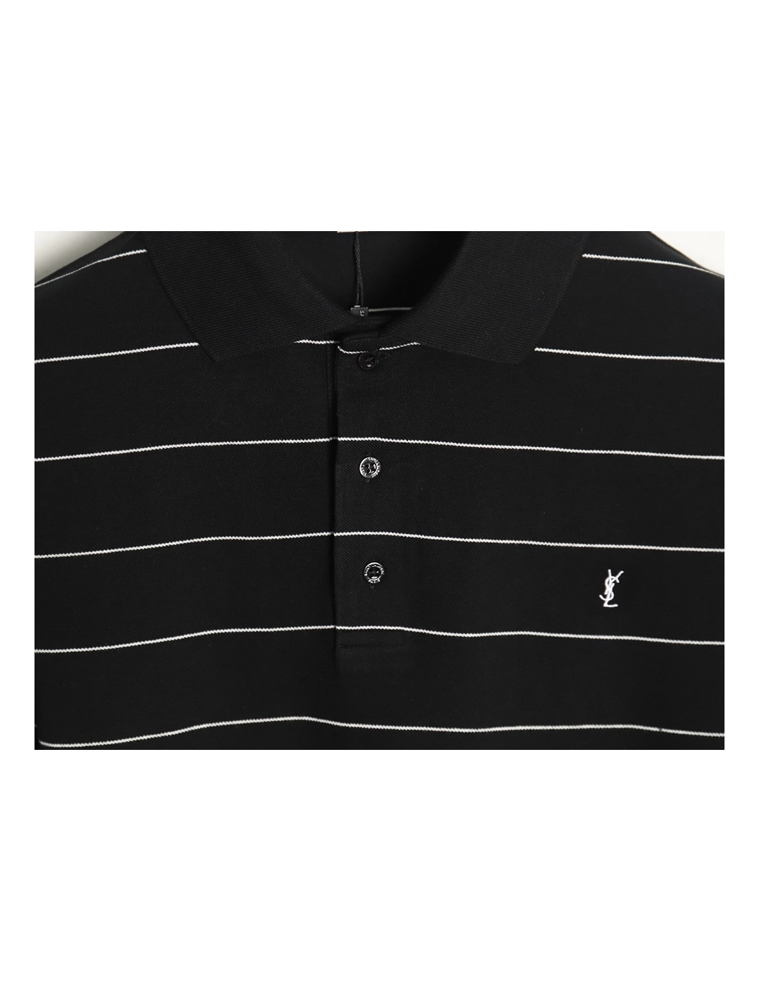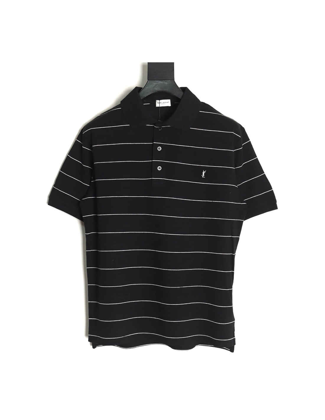Saint Laurent YSL Logo Embroidered Striped Short Sleeve Polo Shirt