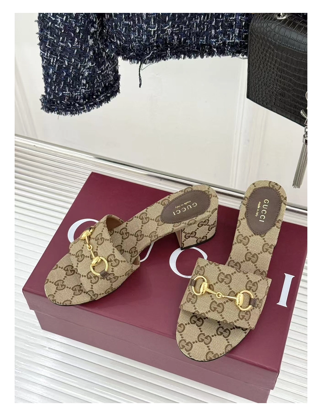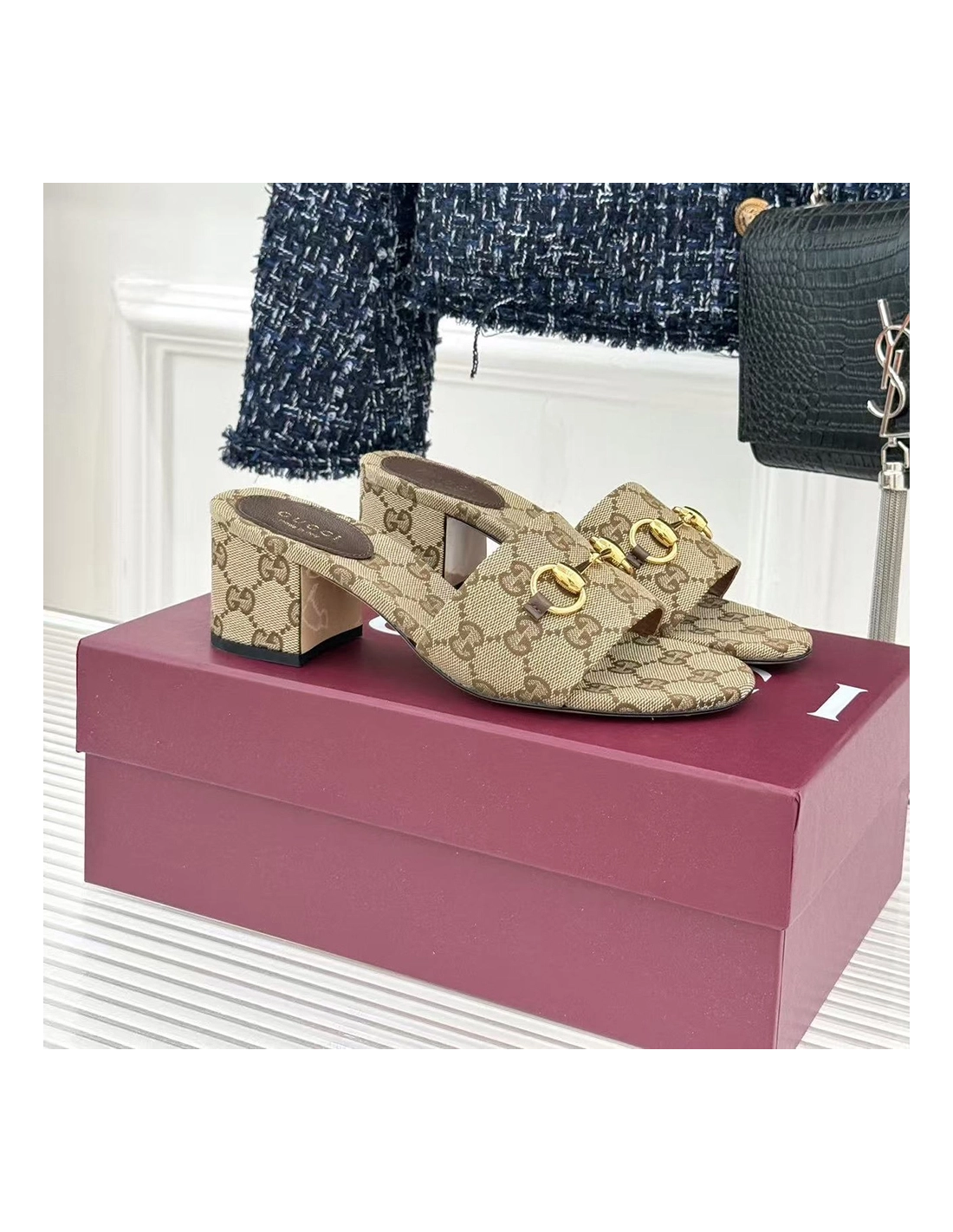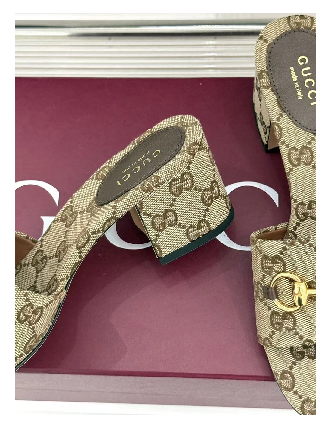 Gucci Siaga GG Monogram Canvas BlockHeel Sandals Heel:5.5cm