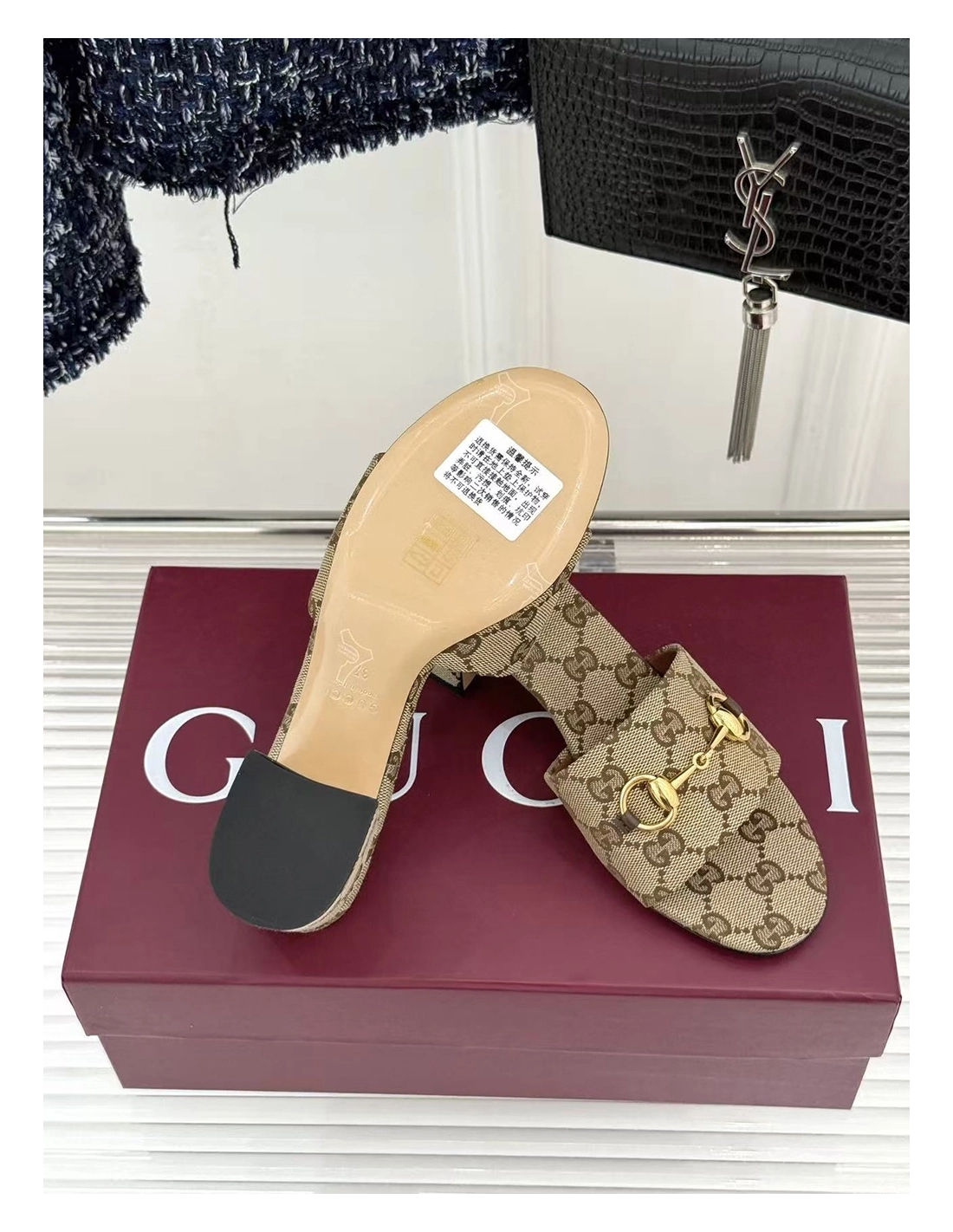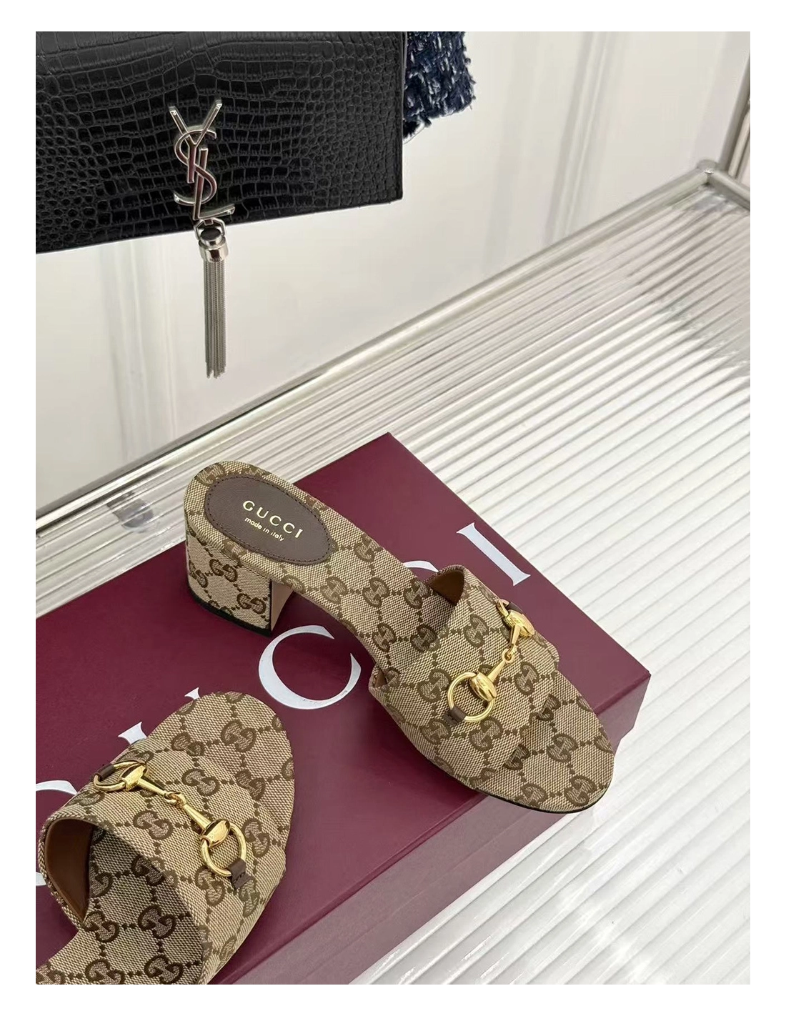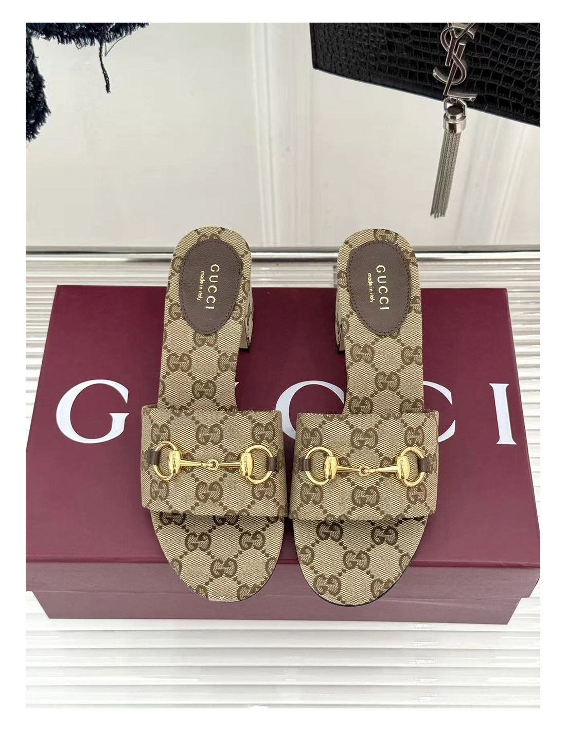 Gucci Siaga GG Monogram Canvas BlockHeel Sandals Heel:5.5cm