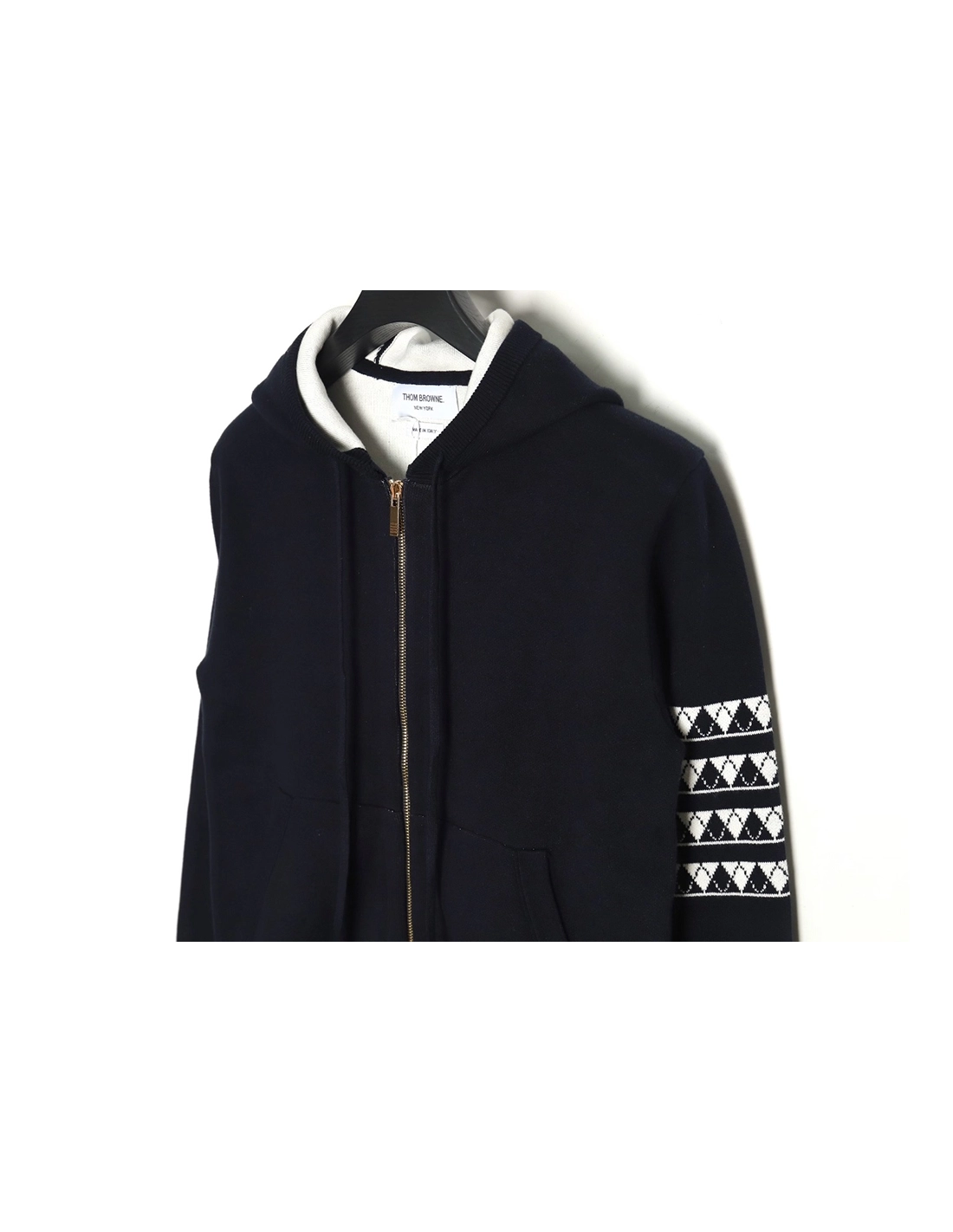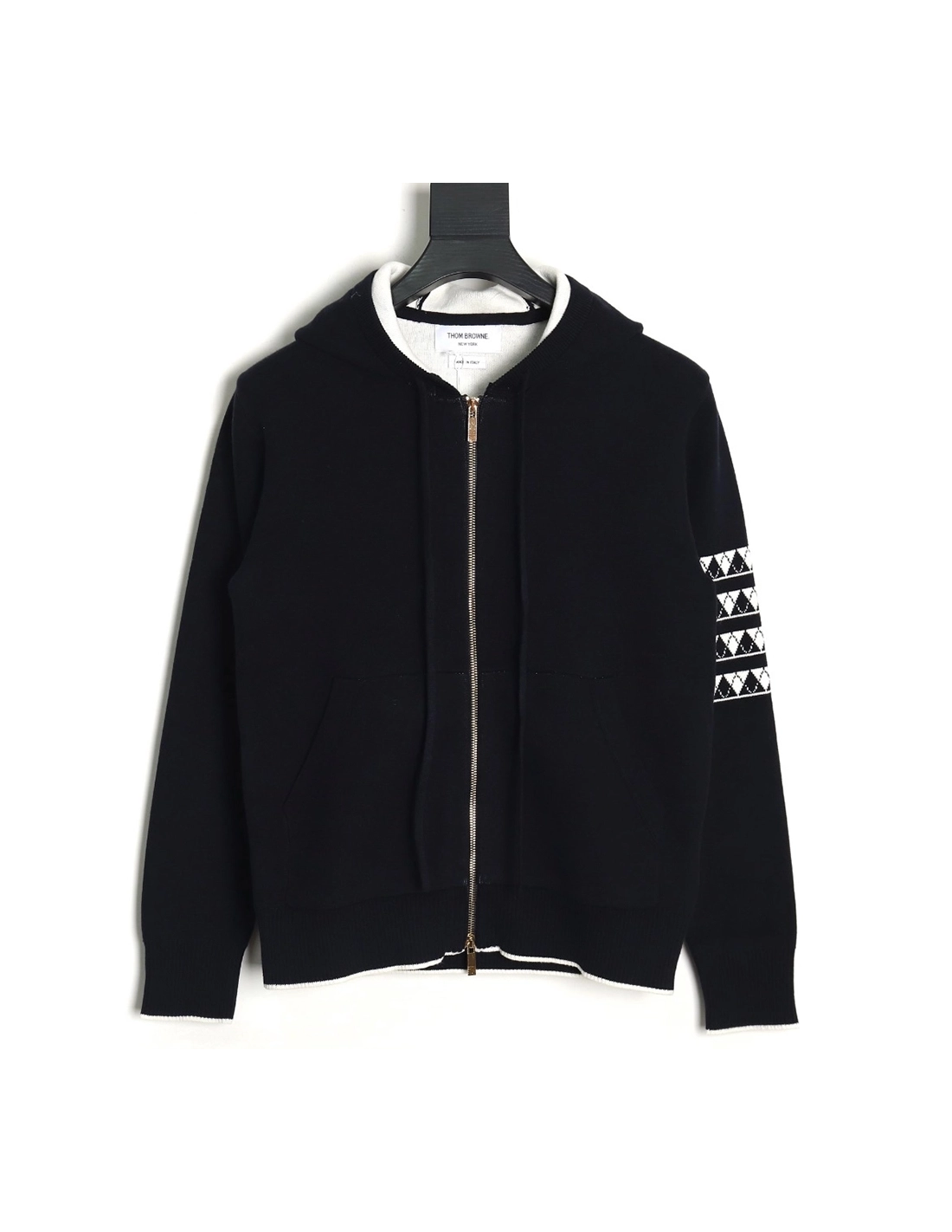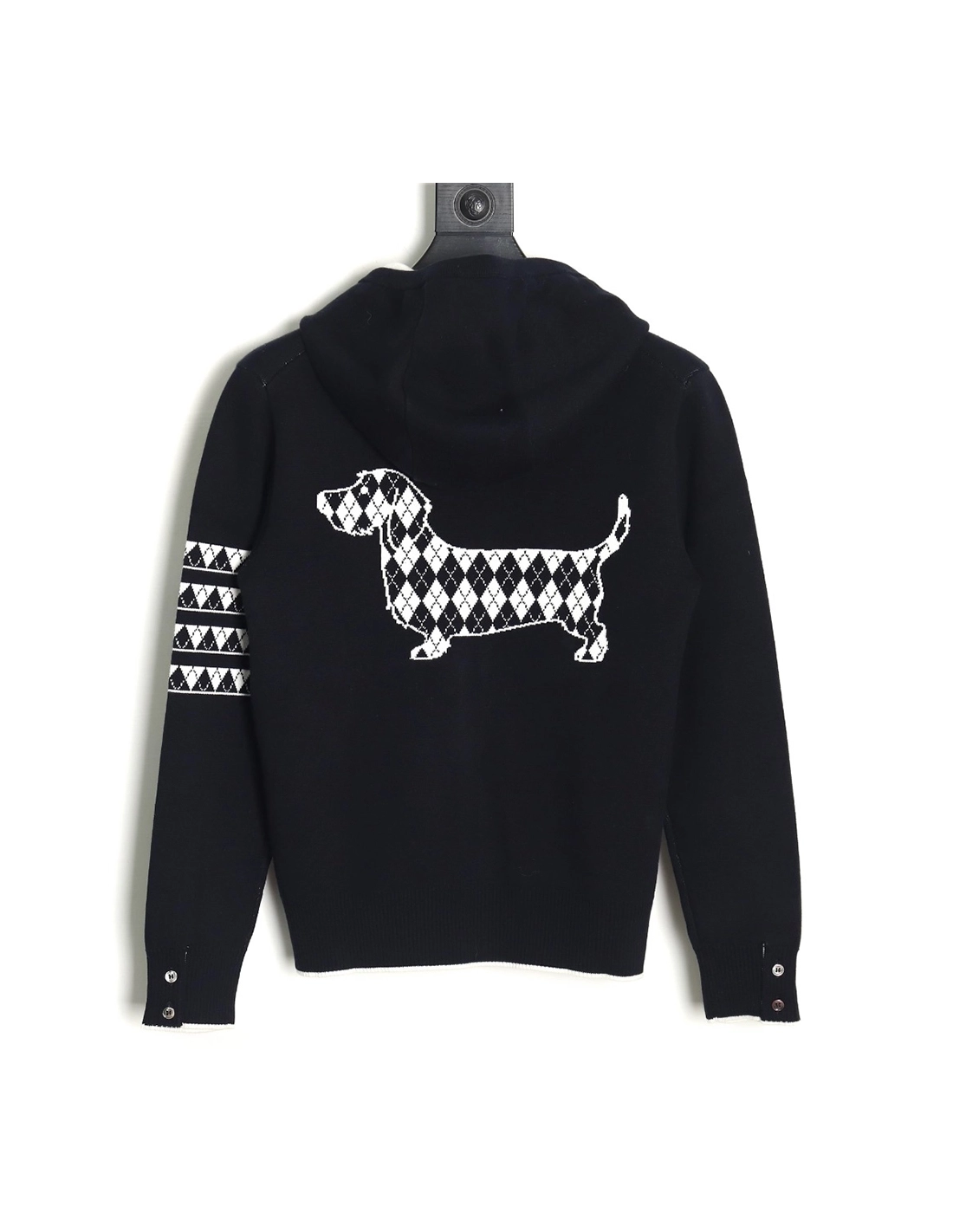 Thom Browne Diamond Dachshund Hooded Knitted Jacket TSK1,Thom Browne Jacket,Jacket,APPAREL